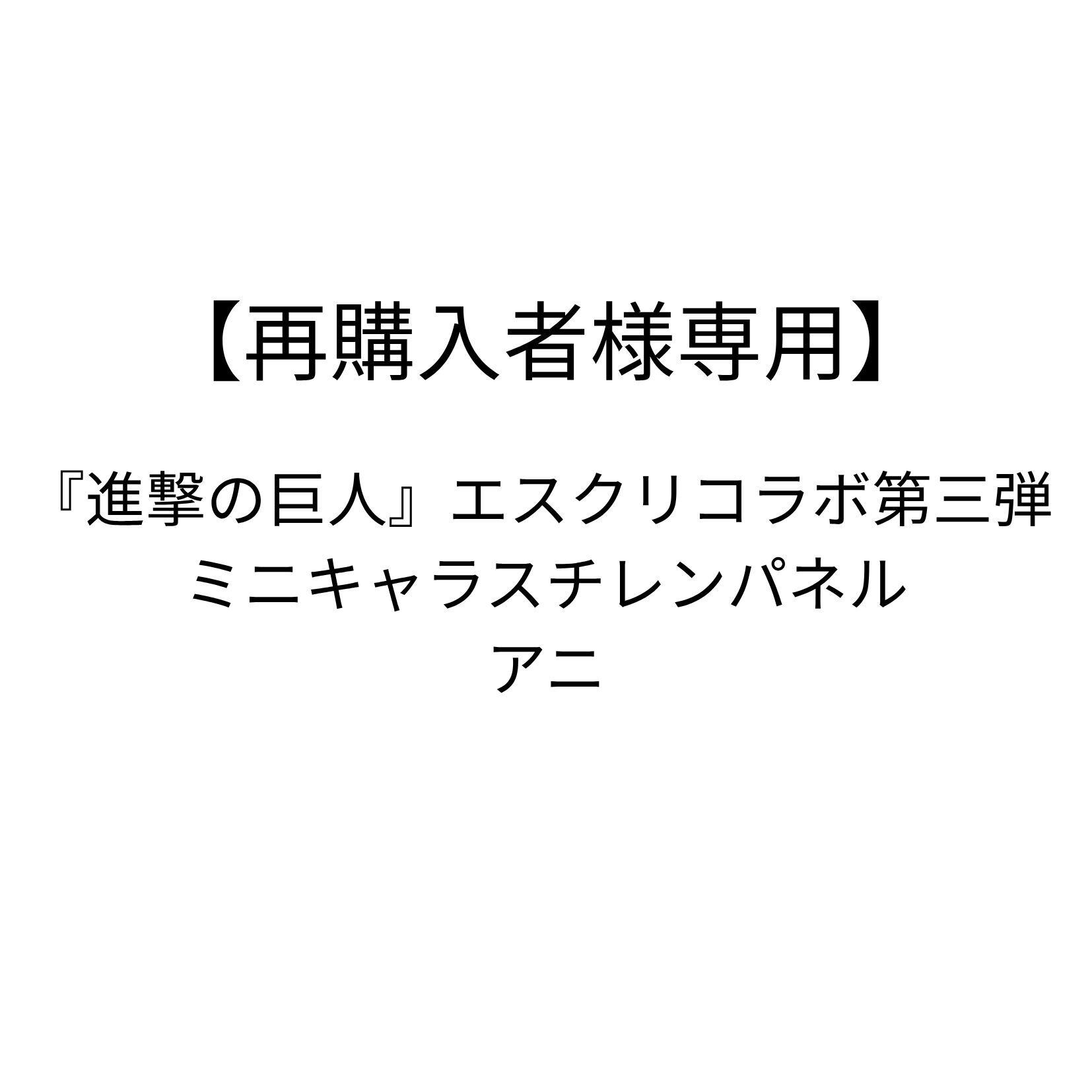 本ページは、「『進撃の巨人』エスクリコラボ第三弾 ミニキャラスチレンパネル アニ」のご予約をいただいていたお客様で、決済エラー等で自動キャンセルとなってしまったお客様の再購入専用ページです。